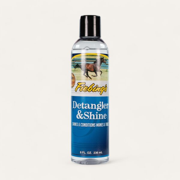 Fiebing’s Detangler & Shine restores the sheen to your horse’s coat while conditioning and detangling the manes and tails. Fiebing’s Detangler & Shine can be used on wet hair and works instantly no matter how tangled or matted. Use just a small amount to detangle hair and impart a silky shine that will not collect dust or dirt.