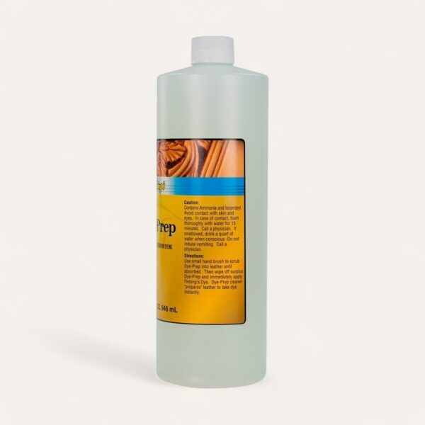 A specially formulated cleaner that prepares leather for dyeing. For use on tannery leather that has not been previously dyed or finished. Removes dirt, grime, and other light tannery finishes.